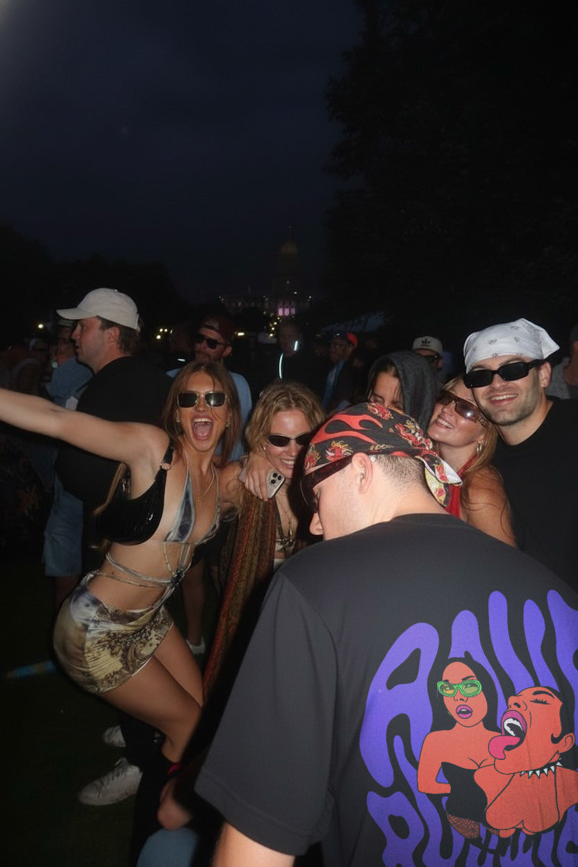 Au dos, un visuel affirmé, inspiré de l’esthétique rave et Y2K – plus qu’un design, une œuvre à porter. Un visuel provocant entre pop culture et transgression. Une ode à la liberté sexuelle et aux nuits sans limites, où la rave devient un exutoire viscéral.